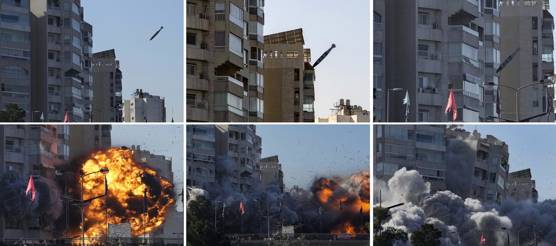 Un fotógrafo de AP logró captar el momento preciso en el que una bomba caía este viernes sobre un edificio residencial en el vecindario de Tayouneh, en la capital del Líbano.
