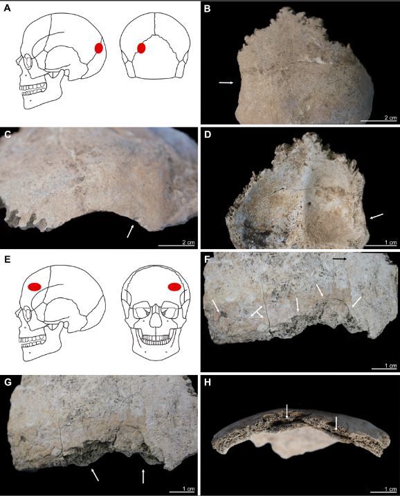 Los paleopatólogos descubrieron que poco antes de morir, una de las personas recibió un golpe en el hueso occipital, y otra en el hueso frontal, lo que sugiere la posibilidad de una muerte violenta. Además, el análisis de radiocarbono demostró que una de las personas encontradas murió unos 130 años después que las demás y su muerte no estuvo relacionada con el incendio.