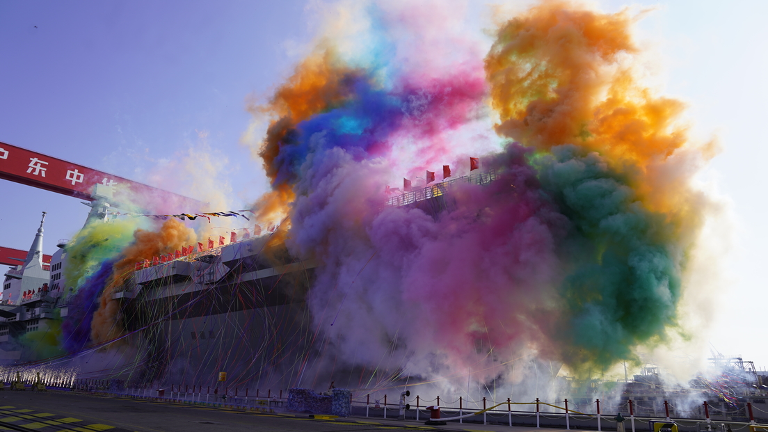 WATCH: China's first Type 076 amphibious assault ship, the Sichuan, is launched, featuring groundbreaking electromagnetic catapult and arresting technology. (Video: CCTV) pic.twitter.com/t0p79wbJso