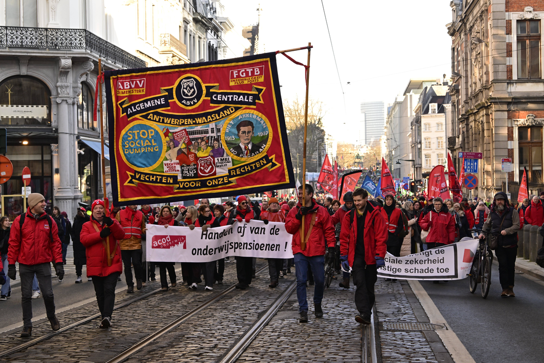 La marcha contra estos planes comenzó a las 10:30 (hora local) en la plaza Albertina, cerca de la estación central de Bruselas, desde donde los manifestantes se movilizan hasta la plaza Poelaert. De acuerdo con el presidente de la federación sindical nacional socialista ABVV-FGTB, Thierry Bodson, en la marcha están participando más de 30.000 manifestantes. Medios locales indican que esta cifra fue confirmada por la Policía de la ciudad de Bruselas.