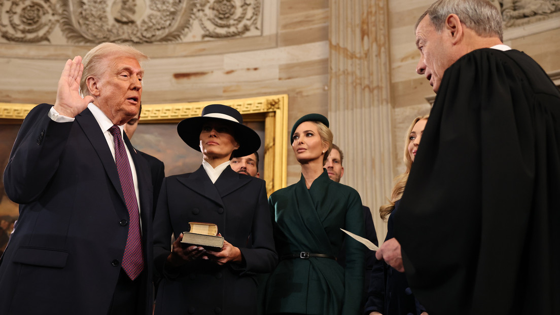 Antes del comienzo de la ceremonia, Trump viajó con su esposa Melania a una reunión con su predecesor Joe Biden y su esposa Jill.