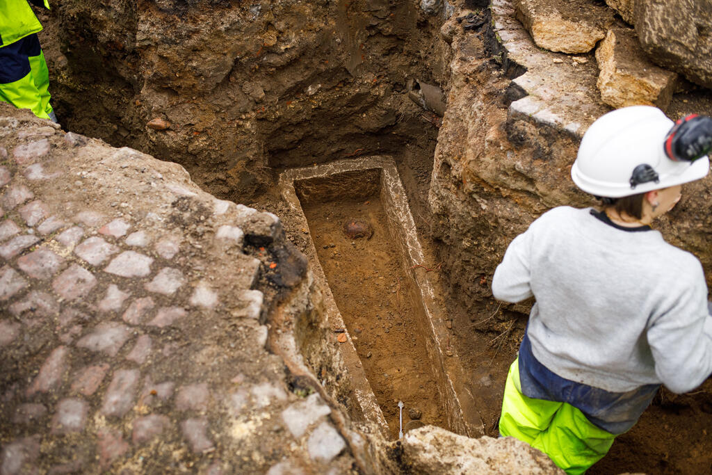 "En la Edad Media, los cementerios estaban unidos a las iglesias. Así que se trata de hallazgos bastante normales y clásicos. Los esperábamos, ya que estamos al lado de [la iglesia de] Sainte-Croix", explicó Camille Vanhove, responsable de las obras de excavación preventiva de la plaza Pierre Renaudel. "Sin embargo, no sabíamos hasta dónde se extendía el cementerio. Ahora empezamos a ver las cosas con más claridad. Se extiende casi hasta la fachada de la iglesia", añadió.