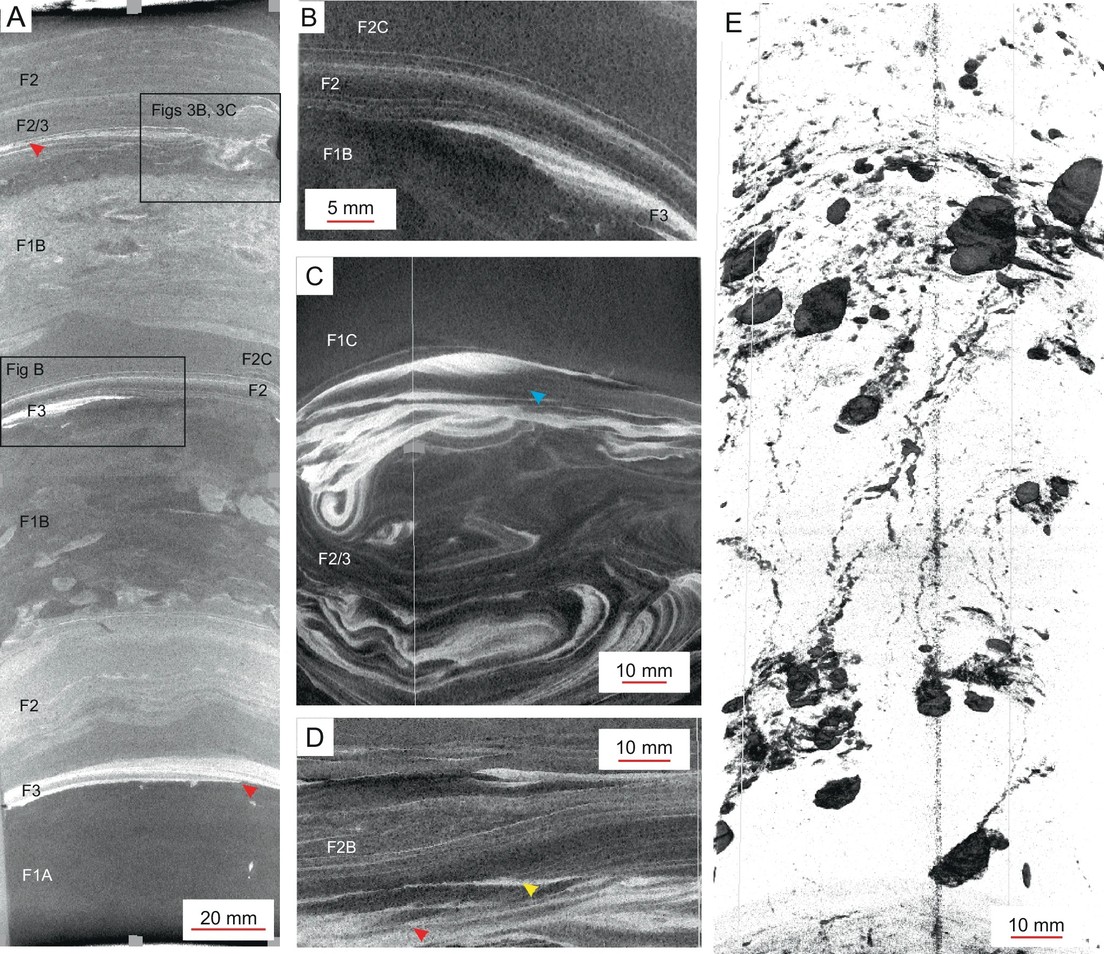 Para analizar este fenómeno, los científicos examinaron la parte superior de 20 núcleos de sedimentos extraídos del fondo de la fosa a 8 kilómetros de profundidad, situada frente a la costa este de Japón. Mediante escáneres de rayos X, lograron visualizar por primera vez estructuras subterráneas formadas por organismos que habitan en el sedimento. Algunas de estas madrigueras permanecen intactas debido a la presencia de minerales como la pirita, que las endurecen y las hacen más visibles.