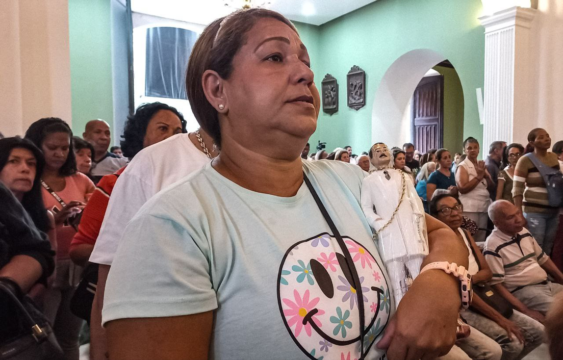 Rosa Terán viajó casi dos horas desde Fila de Mariches, en el municipio Sucre del estado Miranda, para llegar a la iglesia y "cumplirle" a José Gregorio. Cuenta que el beato le hizo el milagro de sanar a su hijo, que estuvo gravemente enfermo en su niñez. Del mismo modo, sostiene que superó dos procesos de cáncer tras pedirle al 'médico de los pobres' por su curación. "Estoy sana, limpia y pura", añade.