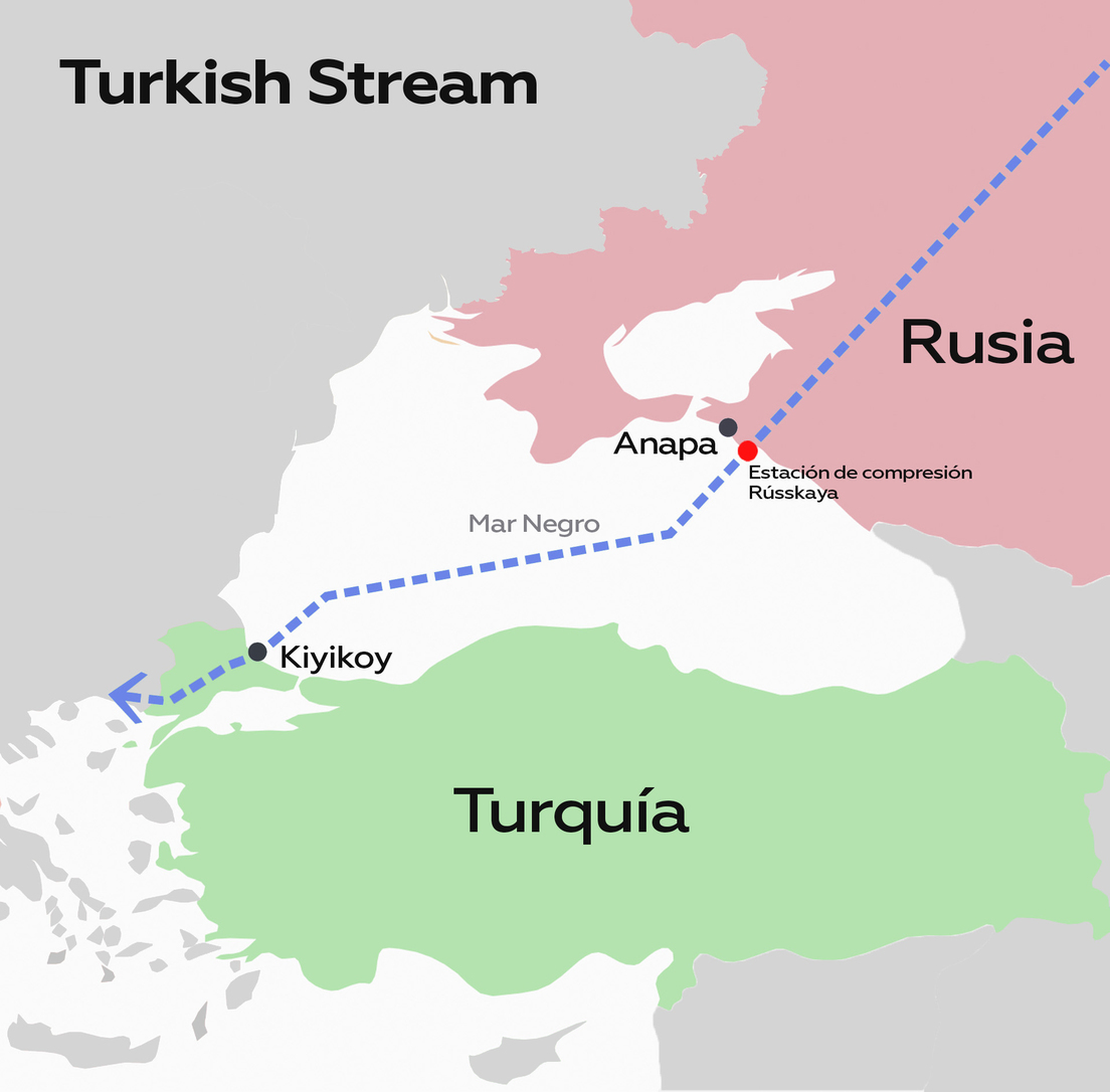 "En la madrugada del 28 de febrero, en el contexto del viaje de Vladímir Zelenski a Washington, el régimen de Kiev, con el fin de detener el suministro de gas a los países europeos, realizó otro intento de atacar la infraestructura de la estación compresora Rússkaya en el pueblo de Gai-Kodzor (región de Krasnodar), que suministra gas a través del gasoducto Turkish Stream, utilizando tres vehículos aéreos no tripulados", reza el comunicado.