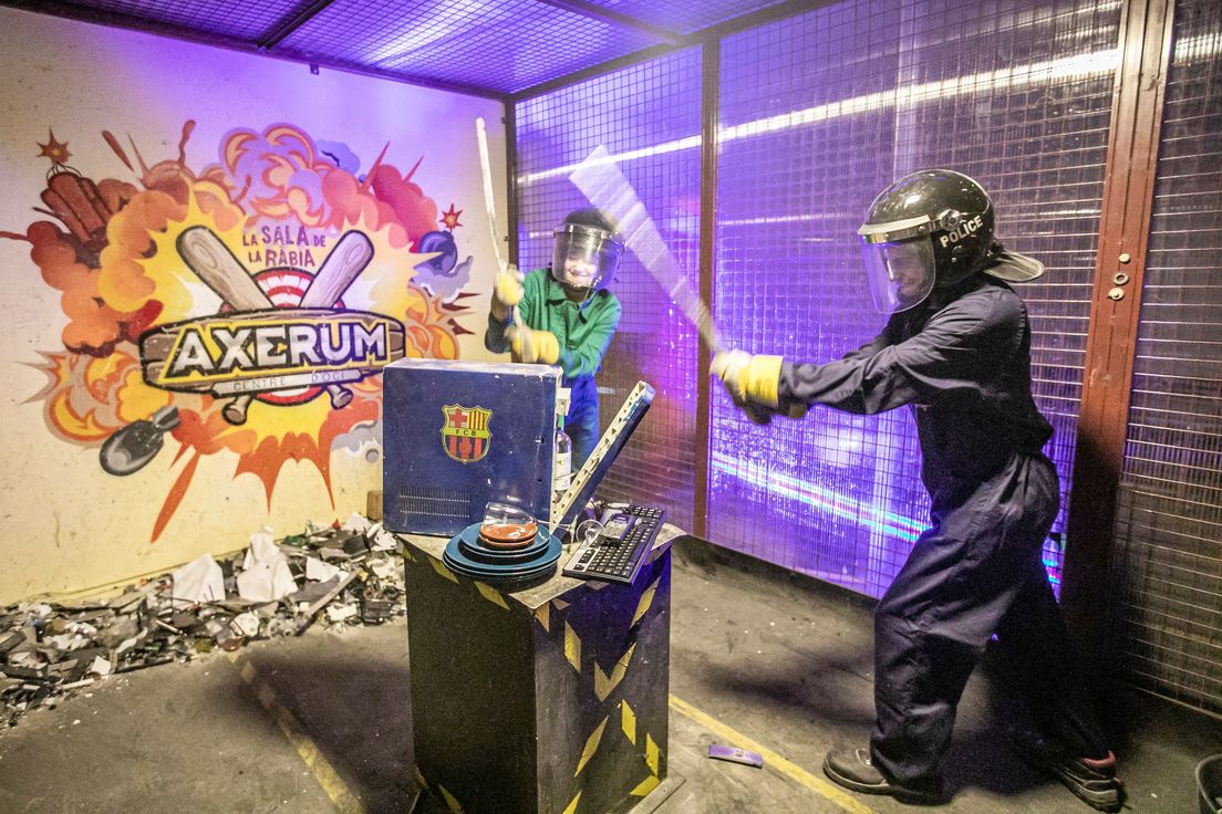 Desde vajillas a televisores, pasando por ordenadores o cualquier otro pequeño electrodoméstico, estos objetos pueden ser atacados con bates, martillos u otras herramientas. Todo ello en un habitáculo controlado y seguro, con todas las medidas de seguridad pertinentes, como gafas protectoras o guantes.