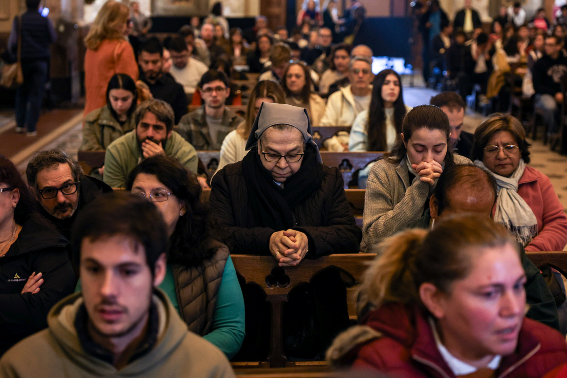 A pesar de la hora y de que es día laboral, la Catedral está colmada. Los feligreses acuden en masa, dolidos por la partida de su líder espiritual y a quienes muchos consideran el argentino más trascendental de la historia.