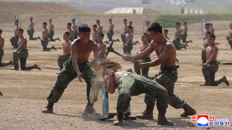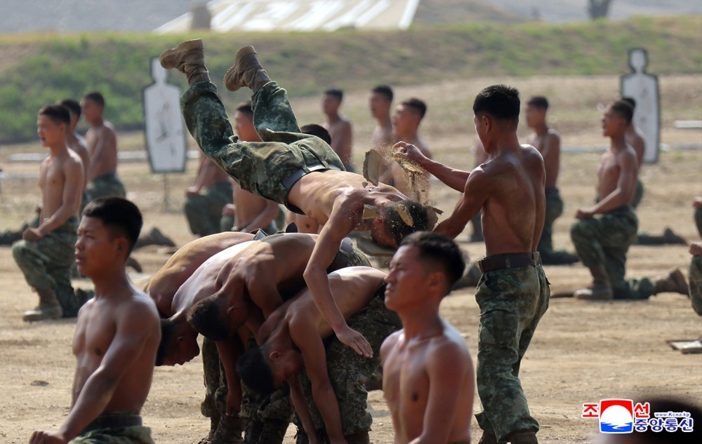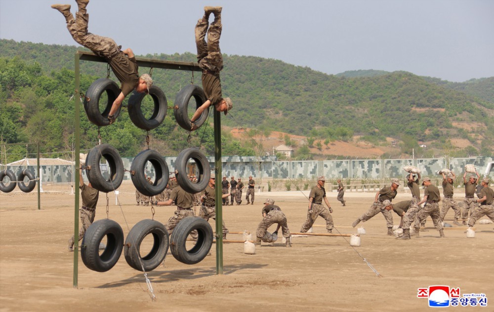 La agencia KCNA publicó este martes imágenes de los ejercicios tácticos realizados por combatientes de varias unidades de operaciones especiales del Ejército de la República Popular Democrática de Corea, durante una reciente visita del líder del país, Kim Jong-un, a una base de entrenamiento.