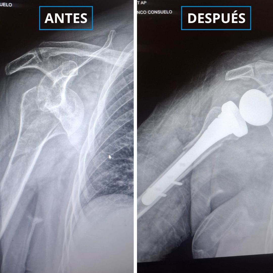 Tristán sufrió una fractura osteoporótica del húmero, que es el hueso que conecta la escápula con antebrazo. Esto implicaba que no podría hacerse una reconstrucción habitual en casos como ese porque su hueso se había fracturado en muchos pedazos.