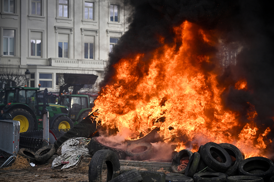 Pila de llantas ardiendo durante las manifestaciones de los agricultores el 18 de diciembre de 2025.Dursun Aydemir / Gettyimages.ru