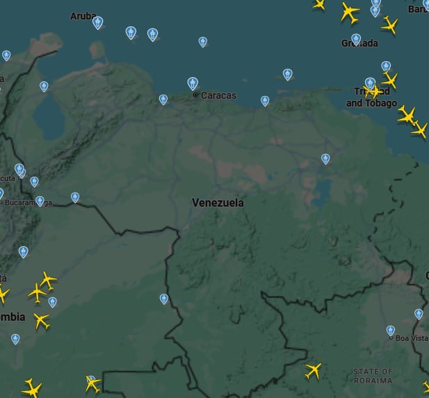 La madrugada de este sábado se registraron fuertes explosiones en la capital de Venezuela, Caracas. En los mapas del sitio web de seguimiento de vuelos Flightradar24 se puede ver que no hay aviones sobrevolando el país latinoamericano.