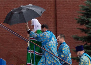 La fecha de la consagración se fijó en el día de una gran fiesta religiosa: la Asunción de la Virgen, que los ortodoxos celebran el 28 de agosto. Durante la ceremonia, el Patriarca ruso ofició una misa y bendijo a cientos de creyentes que lo escuchaban con los paraguas abiertos.