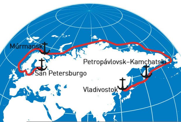 La Ruta Marítima del Norte, que casi en su totalidad se encuentra en aguas heladas del Ártico, es la vía de navegación más corta de la parte europea de Rusia al Oriente Lejano. Algunos de su trechos acuáticos sólo están libres de hielos de gran espesor durante dos meses al año. La distancia entre San Petersburgo y Vladivostok por la Ruta Marítima del Norte es de casi 14.000 kilómetros.