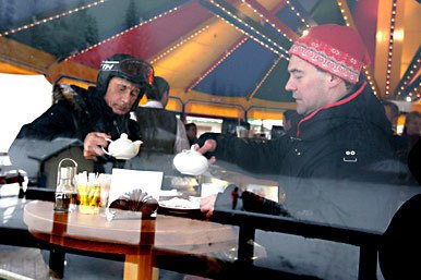 Al terminar la jornada deportiva y de descanso, Medvédev y Putin pasaron por una cafetería cercana a tomar un té. Según la información oficial, el primer mandatario ruso esta pasando sus vacaciones del Año Nuevo junto con su familia en la futura capital de las Olimpiadas de 2014, la ciudad de Sochi.