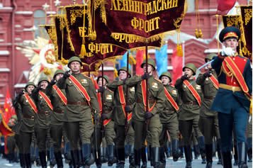 El primer desfile militar de la Victoria se celebró en Moscú el 24 de junio de 1945 para celebrar la derrota de la Alemania nazi en la Segunda Guerra Mundial. Casi 40 mil soldados y más de 1.850 unidades del equipo militar, que enarbolaban el Estandarte de la Victoria pasaron por la Plaza Roja durante dos horas.