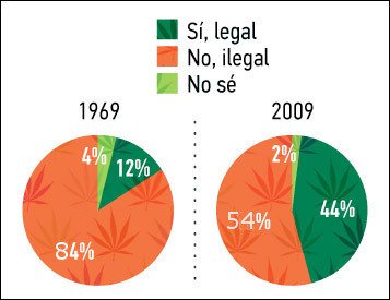 La encuesta efectuada por la agencia Gallup en octubre pasado mostró que el 44 por ciento de los estadounidenses apoyan la legalización. Ese resultado es un 8 por ciento más alto que la del año 2005. La posición de la sociedad hacia esta cuestión ha cambiado dramáticamente durante los últimos cuarenta años.
