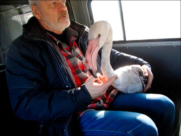 Uno de los flamencos, que habitan en regiones tropicales, murió debido al frío y a las heridas causadas por otras aves. Los demás flamencos fueron rescatados y entregados al centro de rehabilitación de aves silvestres.
