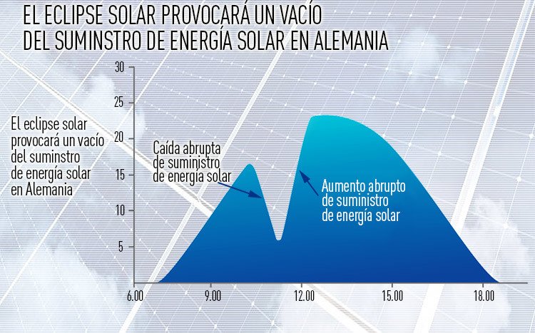 El problema reside en el hecho de que el principio básico de las redes eléctricas se basa en el equilibrio perfecto que el suministro y la demanda de energía guardan entre sí en cada momento, algo que el eclipse trastocará. Será una experiencia sin precedentes para para Alemania, ya que en el 1999 solo un 1% de su energía era de origen solar.