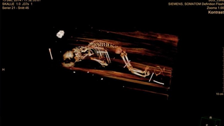 — ann-mari maukonen (@annmarimaukonen) 22 июня 2015El ataúd había sido abierto en varias ocasiones, aunque el feto nunca antes fue detectado debido a que se encontraba detrás de un pie del sacerdote y permanecía tapado por una espesa capa de hierbas que cubría la sepultura.