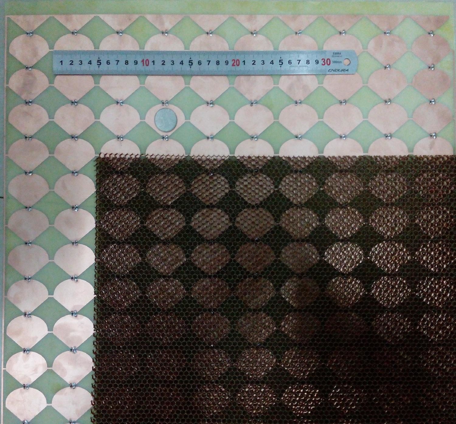 El nuevo revestimiento furtivo consta de varias capas. La superficial tiene un espesor de solo cuatro centésimas partes de milímetro. A pesar de ser tan delgada contiene una matriz de conductores estampados con dos clases de elementos comunes de circuito eléctrico: resistores y diodos de capacidad variable (varactores). Por debajo de esta se coloca una capa dieléctrica que refleja las microondas conforme a su frecuencia. En el fondo hay un panal metálico sobre una losa metálica.