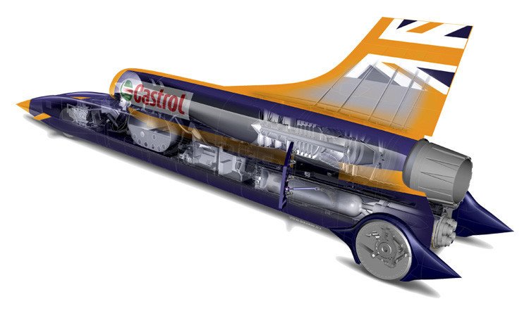 Todas las piezas de este vehículo a propulsión están diseñadas a medida. Por ejemplo, el equipo australiano ha fabricado las ruedas con un tipo de aluminio que se emplea en el ámbito aeroespacial; cada una pesa 140 kilogramos y, a 1.610 km/h, girará 10.000 veces por minuto.