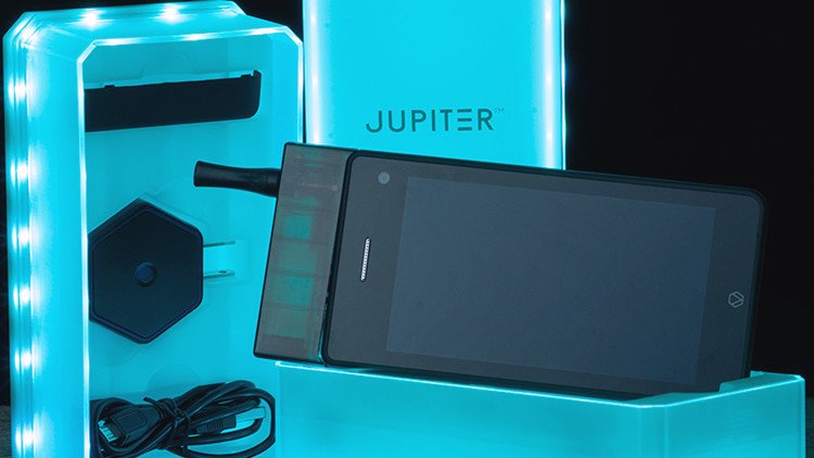 Un teléfono que se fuma. La compañía de cigarrillos electrónicos Vaporcade ha presentado y puesto a la venta el primer teléfono inteligente Jupiter IO 3 que se fuma en una muestra celebrada del 6 a 9 de enero en Las Vegas, EE.UU., informa el portal norteamericano The Verge. El Jupiter IO 3 permite hacer llamadas de teléfono e inhalar vapor de nicotina desde el mismo dispositivo.