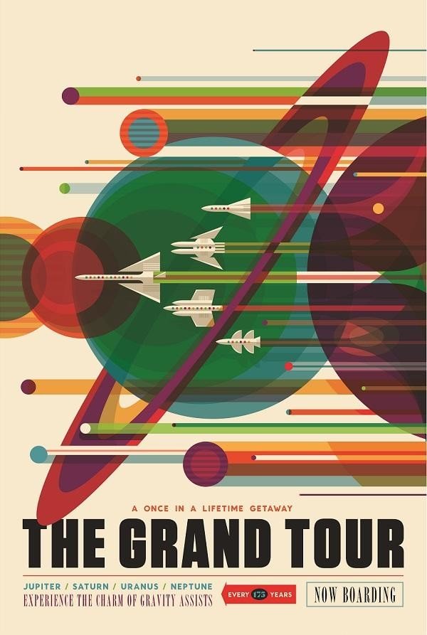 Un grupo de entusiastas de la NASA agrupado en el estudio de diseño del Jet Propulsion Laboratory en Pasadena, California, ha publicado una serie de románticos carteles de marcado estilo retro dedicados a su visión de los viajes espaciales del futuro.