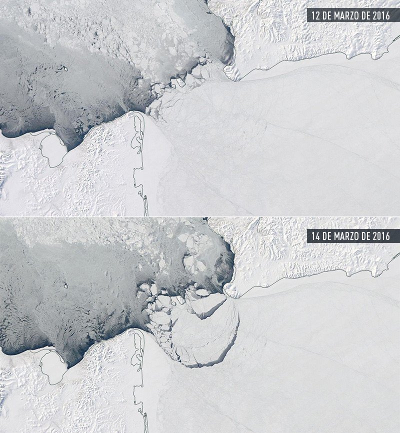 En las fotografías de la NASA tomadas antes y después del desprendimiento se puede observar la magnitud de lo ocurrido.