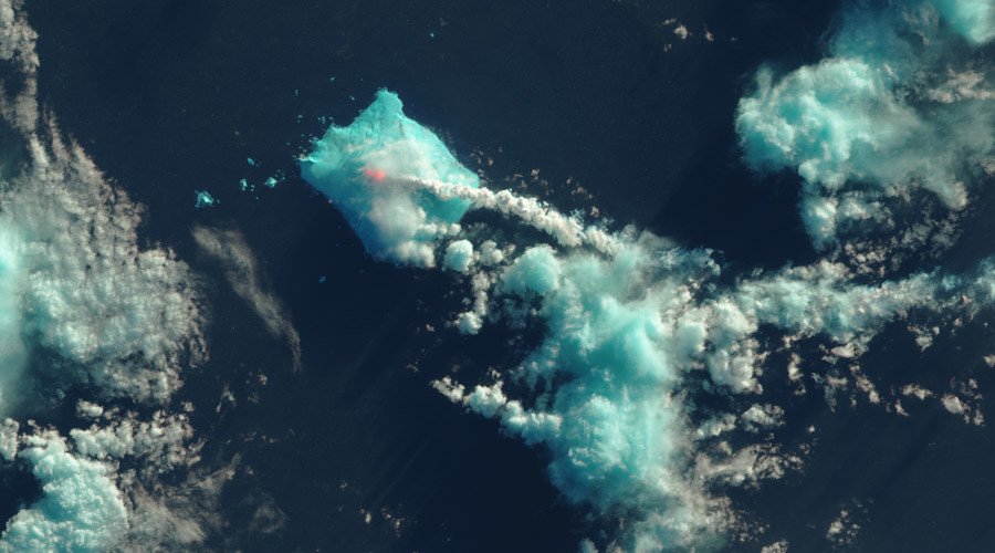 La NASA captó en imágenes la erupción del volcán Sourabaya, que se encuentra en la isla Blanco, en las Sandwich del Sur, un archipiélago a medio camino entre las costas argentinas y la Antártida.