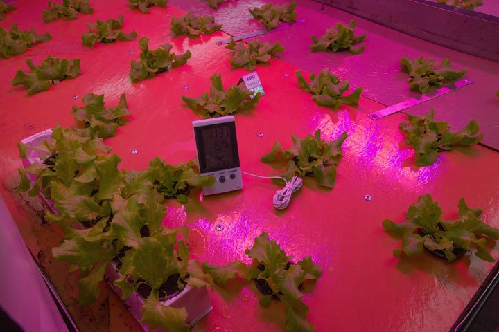 Entre los alimentos había soja, lechuga, zanahoria, rábano, remolacha, patata, pepino, col y cebolla, que eran cultivados en un invernadero con iluminación artificial.