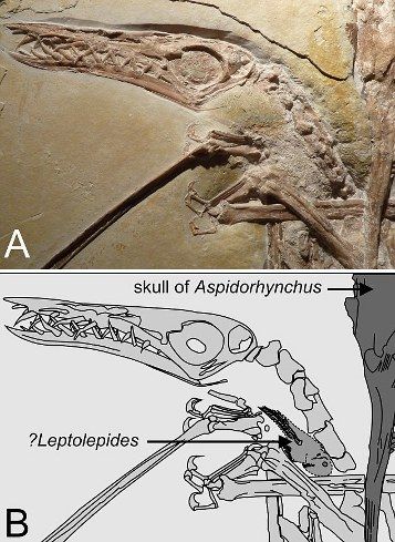 Los investigadores no descartan que el peso del pterosaurio ya muerto haya forzado al pez a descender al fondo del mar, donde por alguna razón fueron bloqueadas sus mandíbulas. Al no lograr escapar, el aspidorhynchus murió.