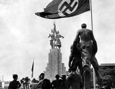 Éste se situaba frente al pabellón de la Alemania nazi. La misma construcción de los pabellones era una verdadera competencia y se luchaba por tener el más alto. El alemán estaba coronado con un águila; el ruso, 10 metros más bajo, con la hoz y el martillo en las manos del obrero y la koljosiana.