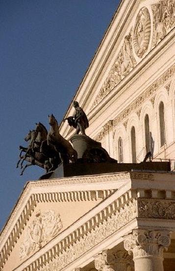 Ocho columnas, una fachada única y una cuádriga son las asociaciones arquitectónicas que acuden a la mente de los aficionados teatrales tras oír las palabras “Teatro Bolshoi”. Durante cuatro años no podían contemplar estos elementos, porque la entrada del edificio se convirtió en la "valla publicitaria" más cara de Moscú: la fachada se cubrió con una tela con anuncios y el teatro mismo se cerró para la reconstrucción en 2005, ya que más del 70% del edificio se encontraba en mal estado. Después, la publicidad fue sustituida por una tela que reproduce la propia fachada.