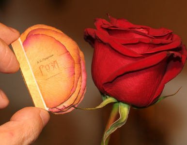 Un libro en hojas de rosa.