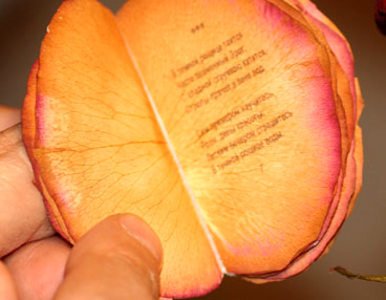 Libro en hojas de rosa.