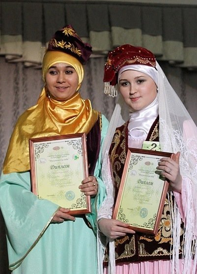 Las dos ganadoras de la categoría “La musulmana más casta”: Guzel Khísamaeva y Liana Gafurova