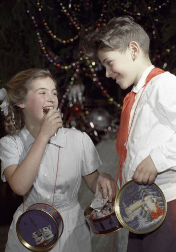 En el árbol de Navidad en la URSS, junto con los juguetes tradicionales, se colgaban estrellas de rubí y la bandera roja que representaba la Revolución de Octubre, los nuevos símbolos del país.