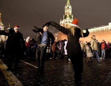 Como no está permitido llevar alcohol a la Plaza Roja, la mayoría de los allí presentes ya llegan borrachos y muy alegres. Así con el gentío, la única forma de saber cuándo es el momento para empezar a comer las uvas y pensar los deseos es seguir el conteo de los segundos a coro. Al paso de los años en las calles principales vecinas de la Plaza se han ido organizando bailes con música pop y nacional rusa. Una forma más de divertirse para la gente que decide disfrutar con este ambiente