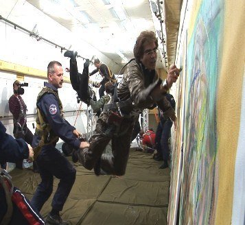 Pintar sin gravedad exige una técnica especial: el pintor primero prepara el fondo con pinturas acrílicas y durante el vuelo usa sólo las de óleo, para que no haya gotas por todo el avión.