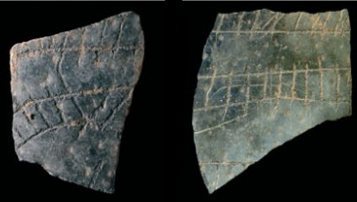 Los especialistas encontraron cuatro tipos de dibujos que se repetían constantemente, todos compuestos de líneas paralelas o cruzadas. Esto les sugirió la idea de que no eran de índole ornamental sino simbólica. Según los científicos, estos signos podrían servir para distinguir un objeto de otro. Los trazos significaban o la pertenencia del objeto a una persona o grupo, o la finalidad del vaso.