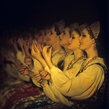 Cada interpretación comienza con la ronda ‘Berezka’, una técnica legada por su fundadora, Nadezhda Nadezhdina. Durante este número no debe moverse ni un sólo pliegue del sarafan, el vestido tradicional ruso. Decenas de bailes folklóricos usan el mismo paso ´mágico´.