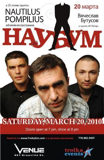 La nostalgia por los anhelos de cambio de la perestroika, los agudos problemas sociales y los temas filosóficos, religiosos y esotéricos son algunos de los elementos de las canciones de los ‘Nau’, como llamaban coloquialmente a la banda. El primer concierto de los ‘U-Piter’ en EE. UU. se realizó en el State Theatre de la ciudad de Falls Church, Virginia, y a él acudieron fanáticos de entre 20 a 70 años, no sólo emigrantes rusos. Llenaron la sala para ver aGeorgi Gasparian (guitarra), Serguéi Virvich (bajo), Evgeni Kulakov (percusión) y al mismo Viacheslav Butusov revivir los éxitos como ‘Tutankamon’, ‘Brilliantovie dorogi’ (Caminos de brillantes), ‘Dihanie’ (Respiro) y ‘Kniaz tishini’ (El príncipe del silencio).
