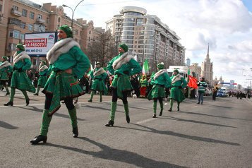 La marcha tradicional se celebra tanto en la misma isla británica así como en las capitales mundiales el 17 de marzo. Sin embargo, en Moscú se celebra el sábado 21 de marzo, así durante cuatro días se extiende la alegría por los irlandeses a quien el santo llevó el cristianismo en el siglo V.