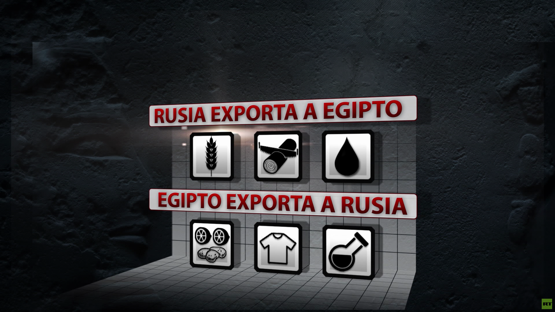 Moscú recibe de Egipto productos alimenticios, químicos y tejidos, mientras que exporta a este país recursos energéticos, granos, madera y productos de celuloide.