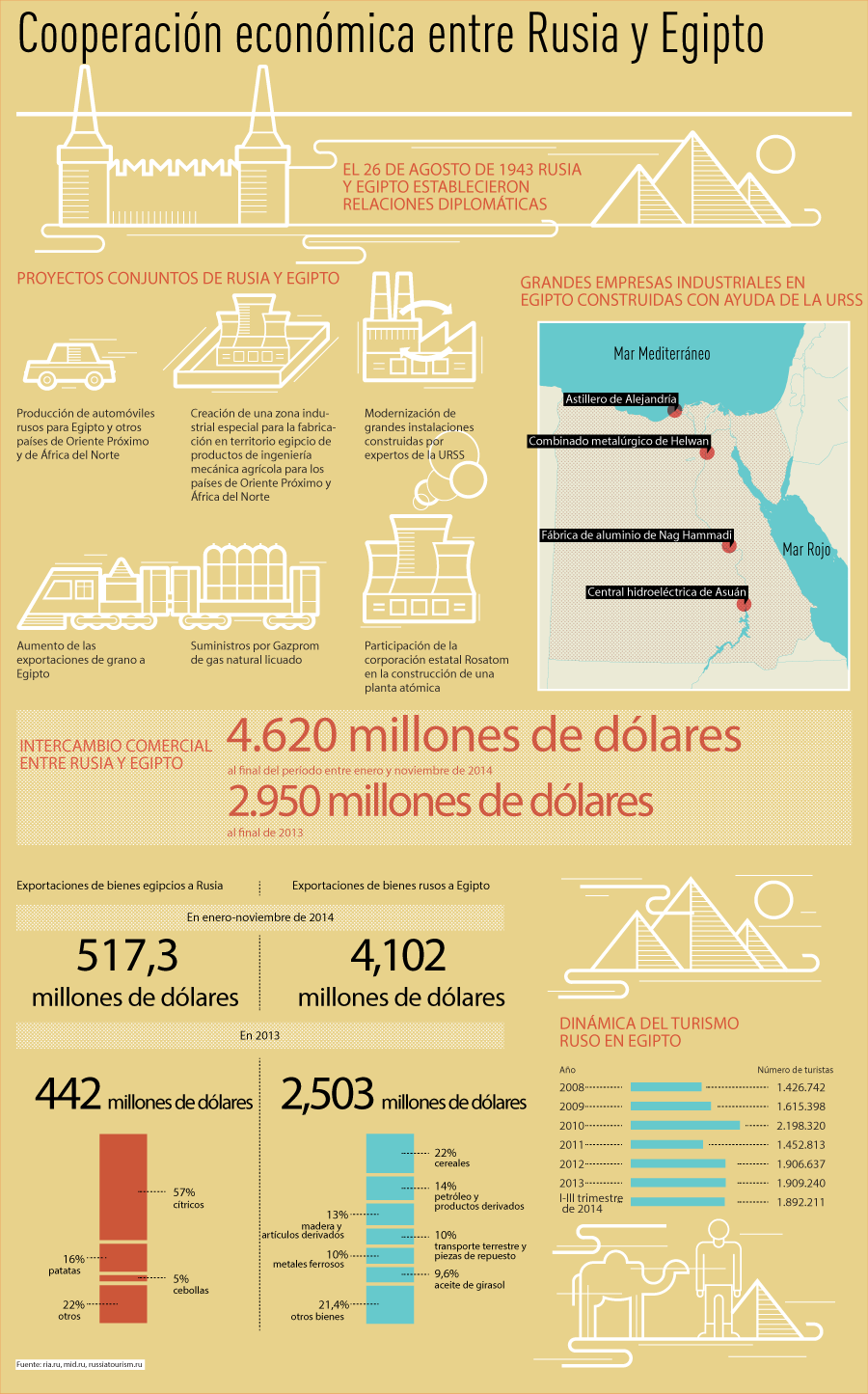Egipto, otro aliado de EE.UU. en Oriente Próximo, acordó con Rusia la creación de una zona de libre comercio y la construcción una central nuclear. Además, estudia la posibilidad de realizar pagos en divisas nacionales.