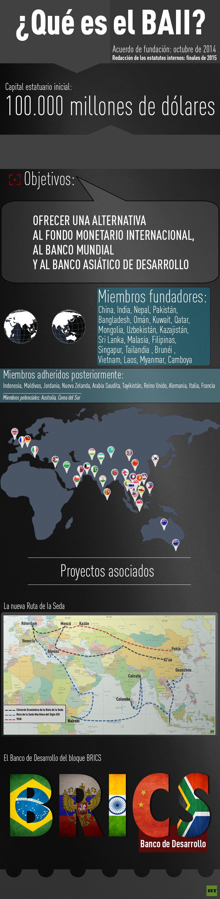La historia del banco, que fue puesto en marcha el pasado octubre con un acuerdo de fundación firmado por 21 estados y un capital estatuario de 100.000 millones de dólares, se está transformando ahora en una debacle diplomática para EE.UU., destaca el columnista de 'The Financial Times' Gideon Rachman. Con los jugadores que se adhirieron a la iniciativa más tarde, más las perspectivas que se están contemplando actualmente, hoy en día Japón y EE.UU. son los dos únicos grandes países que no colaboran con el BAII.