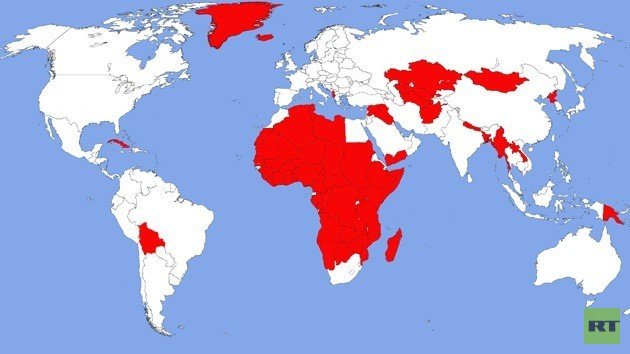 6. Uno de los aspectos que más publicita la compañía es su fuerte presencia en todo el mundo. Pero en realidad la mitad del planeta está libre de McDonald's, puesto que en 105 países no hay ningún restaurante McDonald's, frente a los 119 donde sí se pueden comer sus hamburguesas.