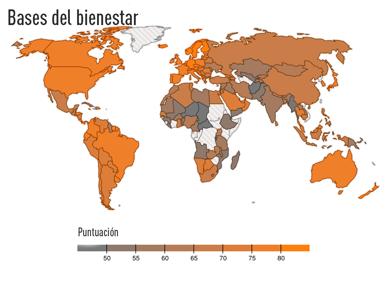 El índice de este año evaluó 52 indicadores diferentes, que van desde la salud, la educación o las libertades, hasta el acceso a alimentos, agua y vivienda. El primer puesto lo obtuvo Noruega, seguido de otros países europeos, mientras que los peores indicadores fueron los de la República Centroafricana.