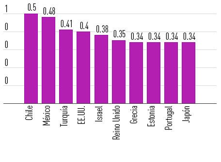 La brecha entre ricos y pobres sigue aumentando, según un informe de la OCDE. El crecimiento económico ha beneficiado de manera desproporcionada a los grupos con los ingresos más elevados, mientras que los hogares con menores ingresos cada vez presentan una situación más desfavorable. Сhile, México, Turquía, EE.UU. e Israel lideran esta estadística poco alentadora. Les siguen cuatro países europeos, incluido el Reino Unido, y el único representante asiático, Japón.