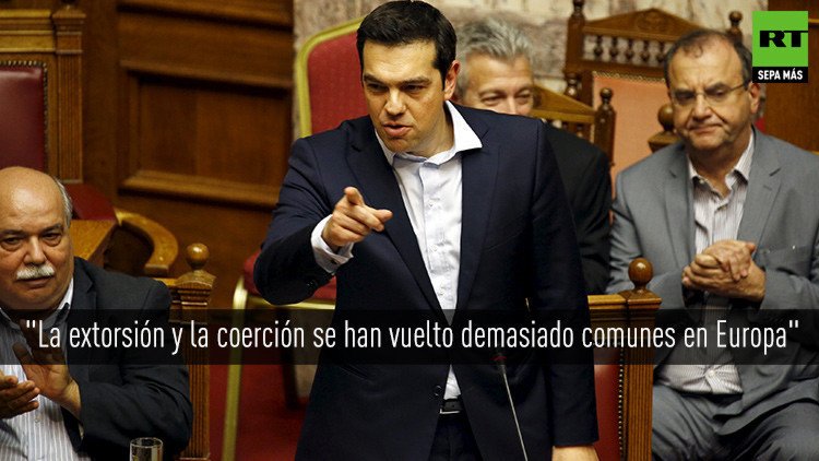 En su mensaje televisado de este domingo, Tsipras acusó al Eurogrupo de ser el causante de la actual situación de Grecia al haber negado al país heleno una prórroga del rescate para que "un pueblo soberano ejerza su derecho soberano de votar democráticamente"; una decisión que calificó de "chantaje".